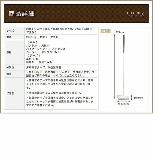 ▼ インテリアショップ roomy garden ( ルーミーガーデン )からのコメント ■ tidy フロアロールクリーナー 木目の美しい天然目の柄と、ステンレスの冴えた輝きで作られた『 tidy フロアロールクリーナー 』。
